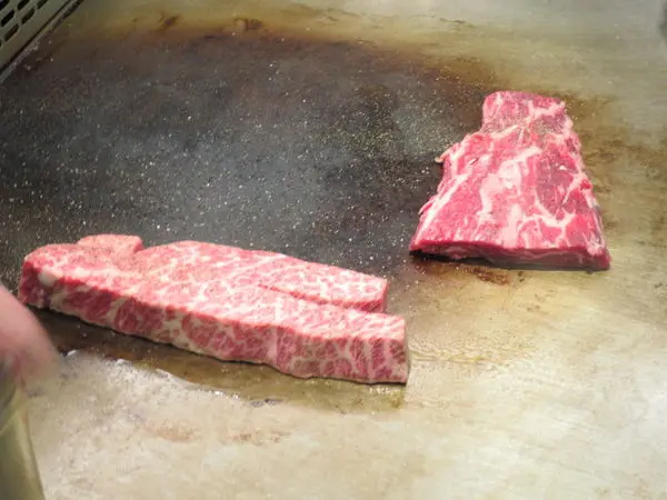 我們的第三道主菜 牛排 也上煎台囉 主人家好品味 選了兩種不同的牛排