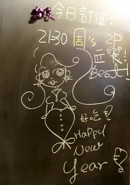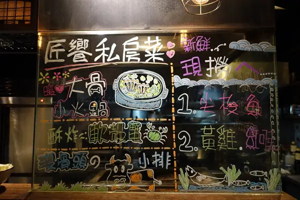 吧台前有一個小黑板寫的是匠饗的私房菜