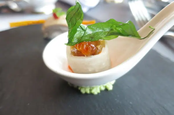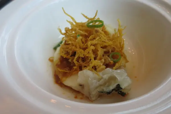 [嫁紗海蜇捲] 一種把海蜇皮捲起來的概念 對了 湯匙底下的泥狀物其實也是食材