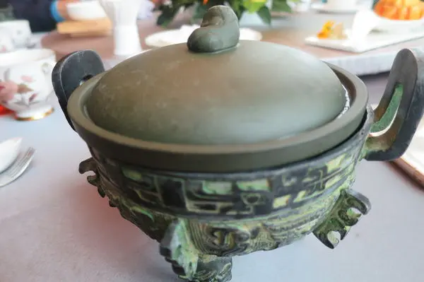 [百合蓮子杏仁露] 這青銅器也太吸睛了吧 四七名人宴就是都要走這種容器很特別的路線