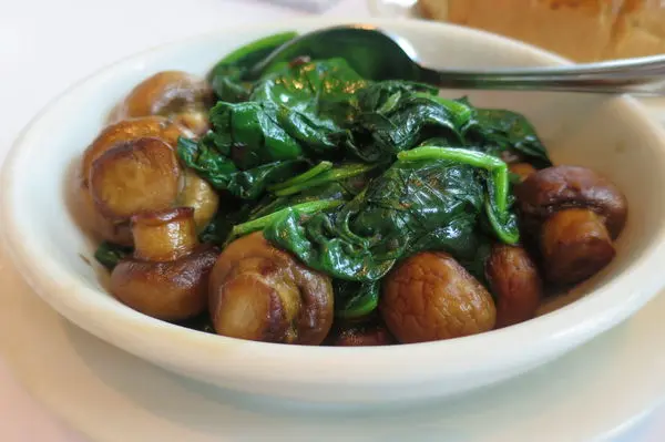 [炒菠菜蘑菇] 這道就是絕對健康的啦 (都來吃大餐了還擔心熱量嗎)