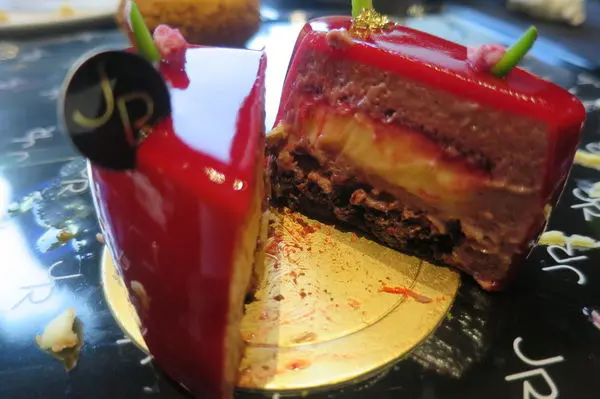 我們的紅寶石蛋糕橫切片 層次很多 主要會感受到慕絲的口感