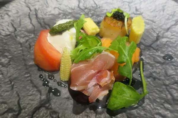 [開胃前菜] 干貝 水牛起士 拜膚火腿