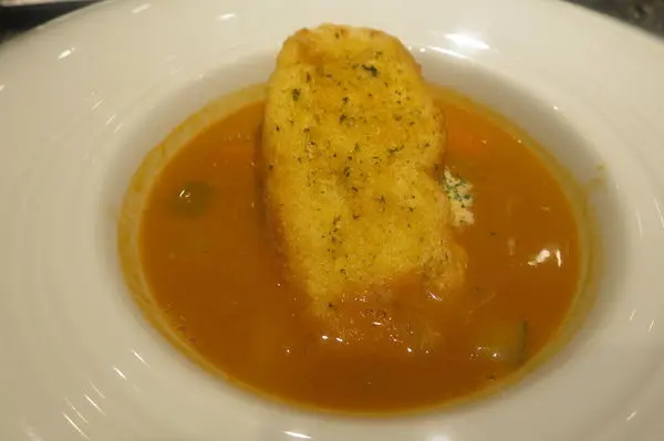 果然沒有選錯 湯嘗起來很濃 龍蝦蝦頭的那種香味融入湯裡 沾麵包也很好吃