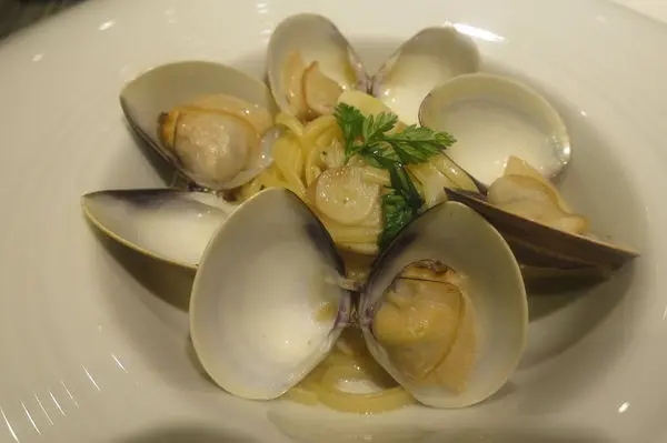 [白酒蒜香辣椒蛤蜊細扁麵] 在主餐牛排來之前 還有一份份量不大的麵 先墊墊肚子