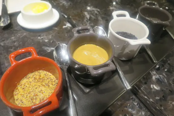 要送主餐牛排之前 配料四姊妹來了 我最喜歡的當然還是芥末籽