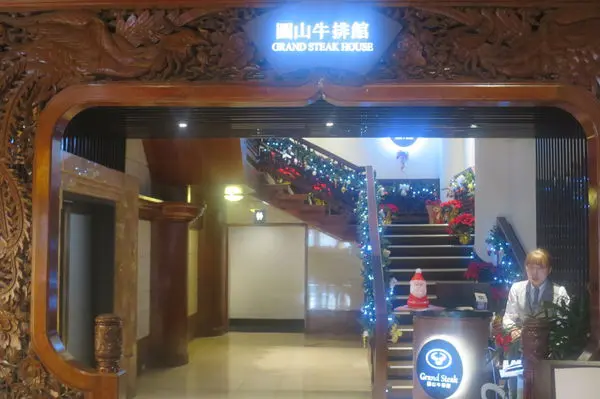 圓山牛排館在圓山大廳進來走到底的右手邊
