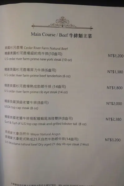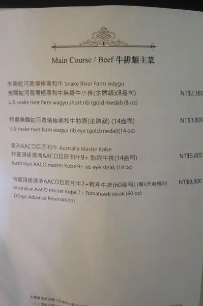 當然實際的價格就沒有在圓山牛排館的菜單裡了