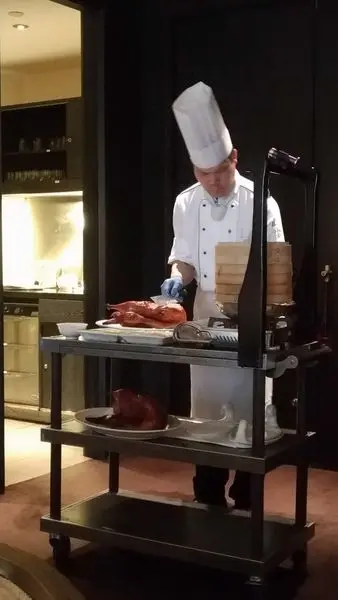 吃到的一半的時候師父就拿烤鴨來幫我們進行片鴨秀了