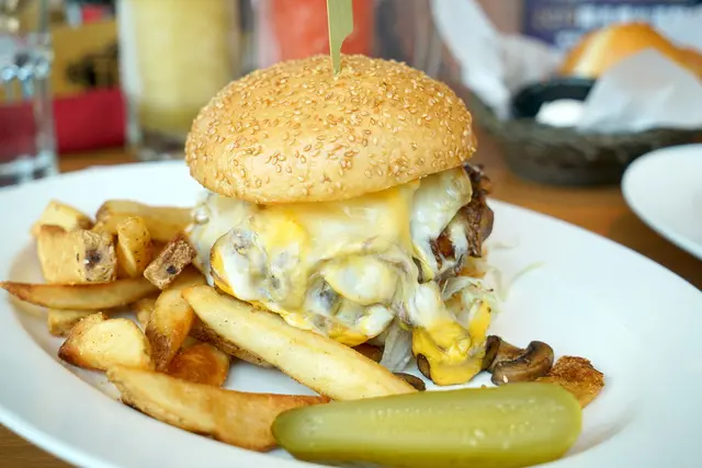 牛肉濃郁、起司濃醇夾入多汁的蘑菇、還有生菜的多層次口感、BBQ烤肉醬的風味讓整個風味完全結合的完美
