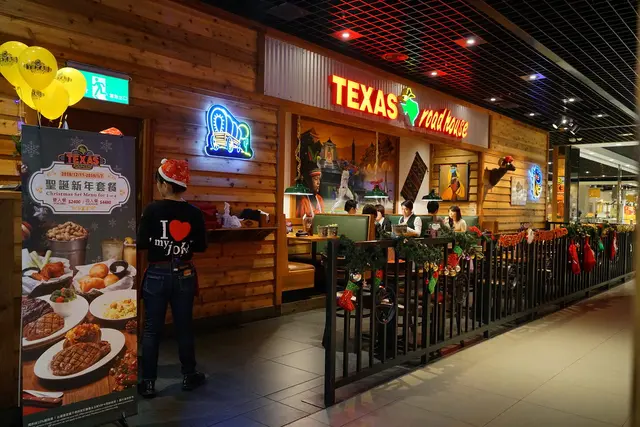 門口西部牛仔的木質醒目餐廳就是Texas Roadhouse Taiwan 德州鮮切牛排