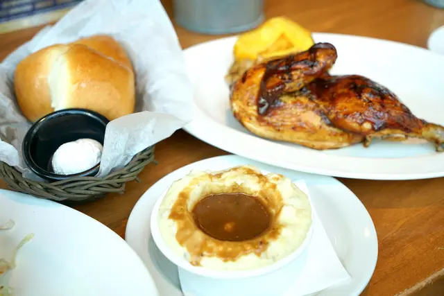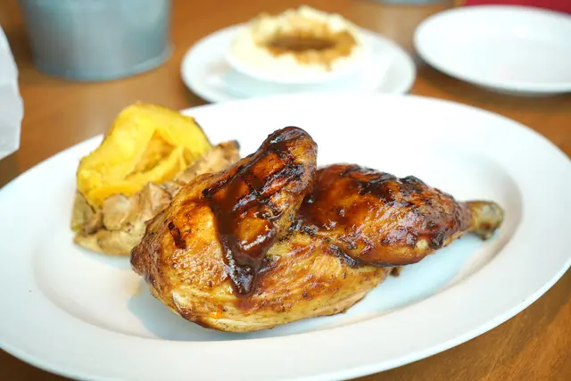 香料烤半雞620附上兩款小菜(4選二:肉醬薯泥、烤地瓜)