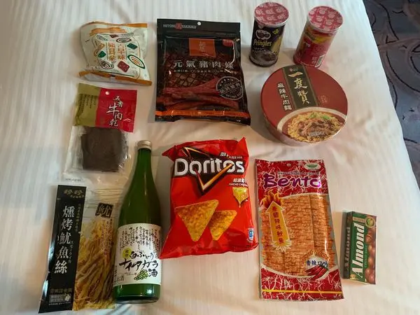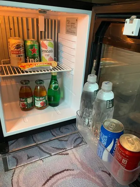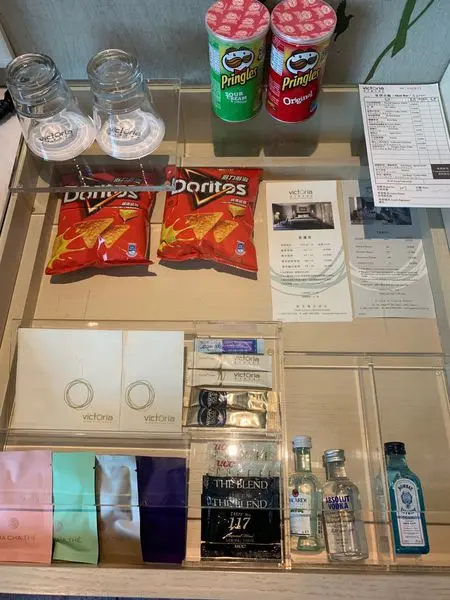其實蠻多台灣的飯店都少見mini bar有真的放食物了(台灣太方便啦樓下7-11就什麼都有)