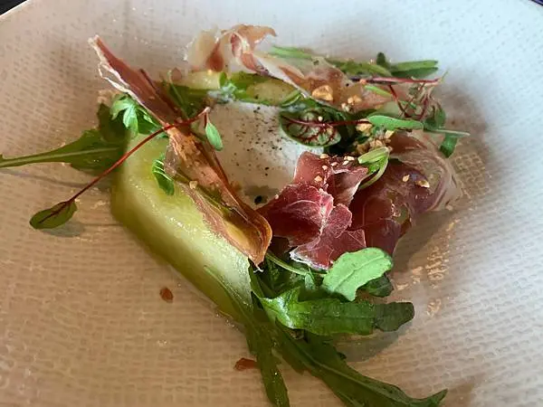 [前菜] 這是哈密瓜配西班牙風乾火腿以及羊奶起司