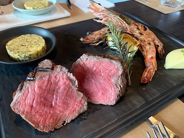 我點的是美國德州肋眼菲力 加大明蝦