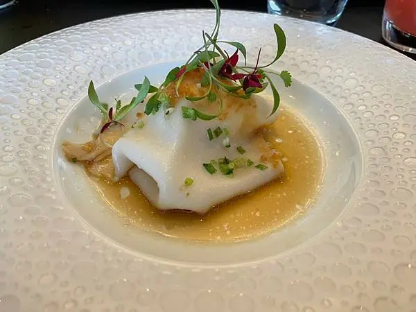 大片的河粉包著龍蝦球  很精緻的一道菜