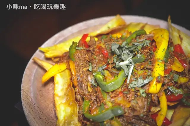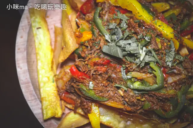 用了甜椒、橄欖、洋蔥、大量辛香料去燉煮,如布條狀的牛肉吸飽醬汁,微辣開胃