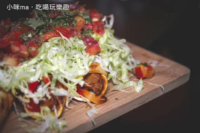 不是一大捲的塔可捲,反而以小卷的方式呈現,舖上多樣生菜鮮蔬,一人一捲分量剛剛好
