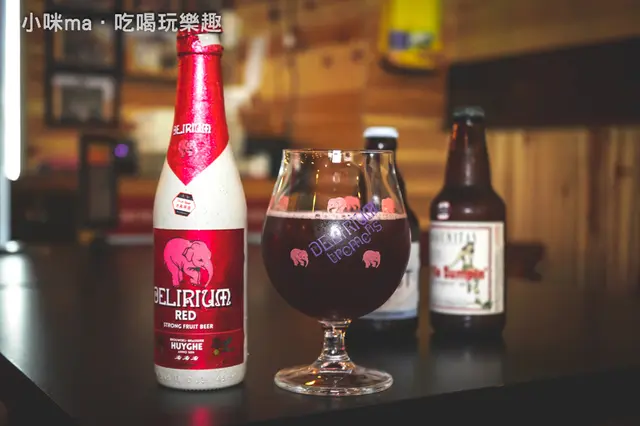 來到ABV每一精釀啤酒都有專屬的啤酒杯,這款櫻桃紅啤酒的酒杯還有粉色大象裝飾,超Q