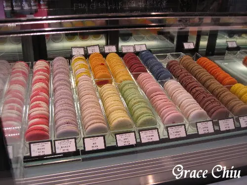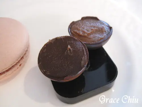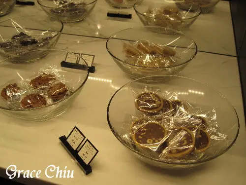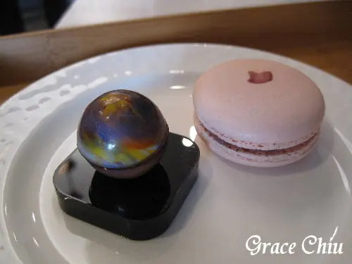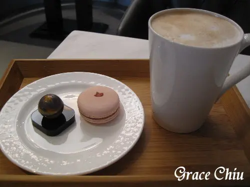 馬卡龍跟星空巧克力的口味蠻多,這次看到櫃裡的馬卡龍有不少"花系列"口味,我們選了玫瑰覆盆子,另外巧克力Bon Bon有20幾種選擇,雖然我比較喜歡吃黑巧克力,但最後以"色澤"選了以牛奶巧克力為主的蜂蜜口味,呵呵~