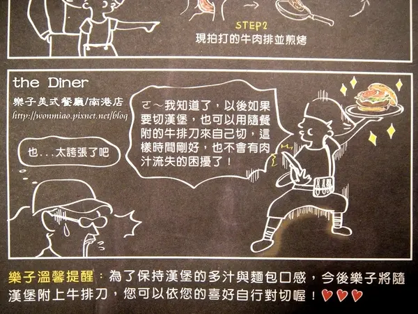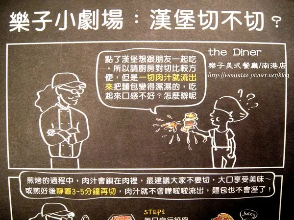 桌上立牌還有個關於漢堡切不切的小劇場, 感覺十分有趣!!