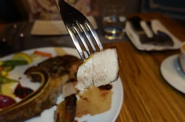 本身因為有醃製過,所以有鹹度,不須額外調味就很好,或者可以搭配一旁莓果醬料,帶點酸甜,不會膩口