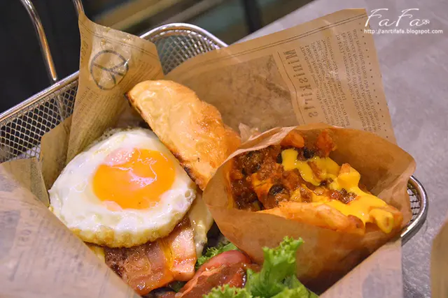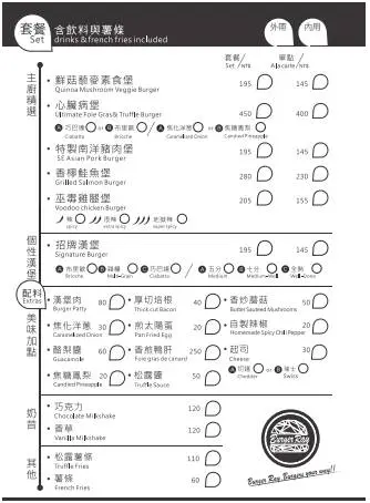 搭配煎太陽蛋 NT$20、厚切培根 NT$40、焦化洋蔥 NT$30、瑞士起司 NT$30,