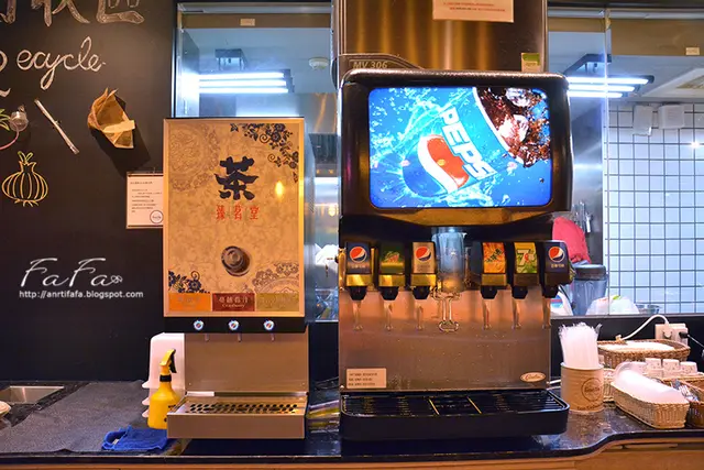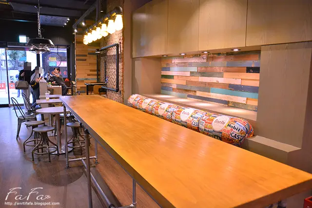個人還蠻喜歡這款美式街頭風格的靠墊,色彩繽紛感覺頗歡樂。店內不收服務費,取餐、倒飲料跟回收餐具都是自己來。