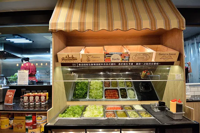生菜與醬料都可自己搭配與夾取,但為了衛生習慣,限一次。生菜的醬汁有蛋黃醬、照燒醬、BBQ醬。