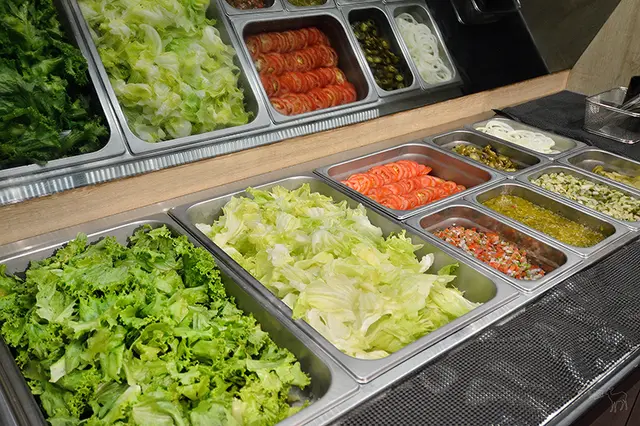 萵苣生菜、美生菜、番茄、洋蔥、酸黃瓜、墨西哥辣椒、莎莎醬等,讓喜歡搭配點生菜的我看了很開心!