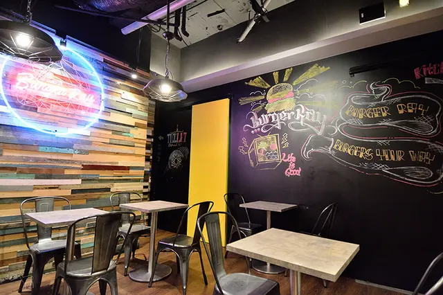 Burger Ray 個性漢堡的點餐方式為先到櫃檯點餐結帳,接著依照叫號取餐,在自取生菜配料。
