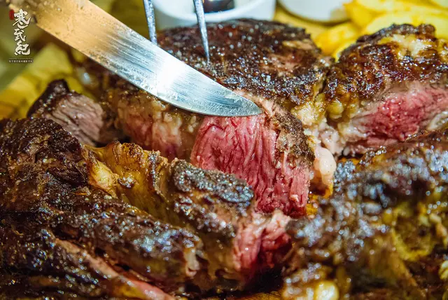 一般人在看到如此大尺寸的帶骨牛排應該會不知道該如何吃,此時還是建議「找專業的來」!哈哈!