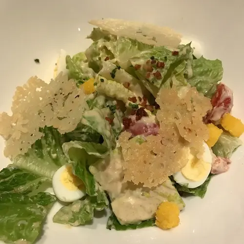 蘿蔓生菜段、培根碎、水煮蛋、麵包丁和凱薩醬