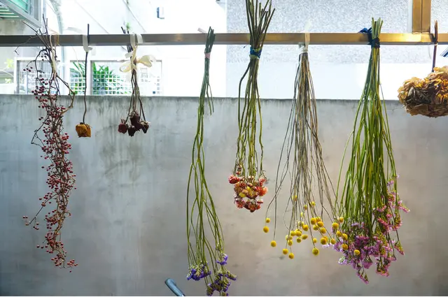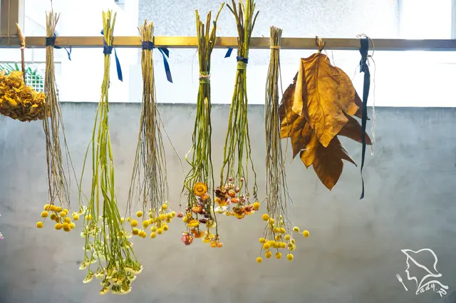 店內後方的陽台,吊掛的乾燥花束,別具新意。