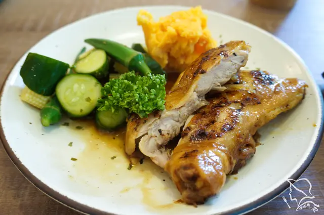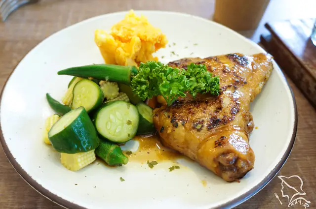 家常味的日式定食, 日式柴魚醬油醃製後的雞腿,甜而不膩,清香美味。 還有著黃瓜、秋葵、玉米筍配菜清爽不已,這道我非常喜愛。