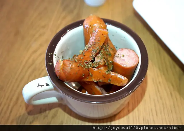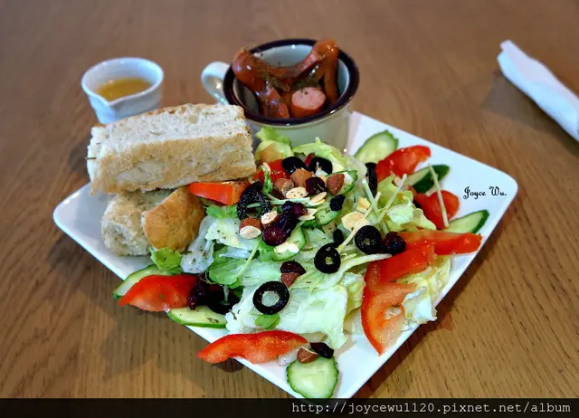 鹹點滿意★★★☆☆一般時段有供應輕食,貝果和三明治,當天我們吃的雞肉貝果相當不錯,另外,不一定系列的德式香腸沙拉也很滿意呢。