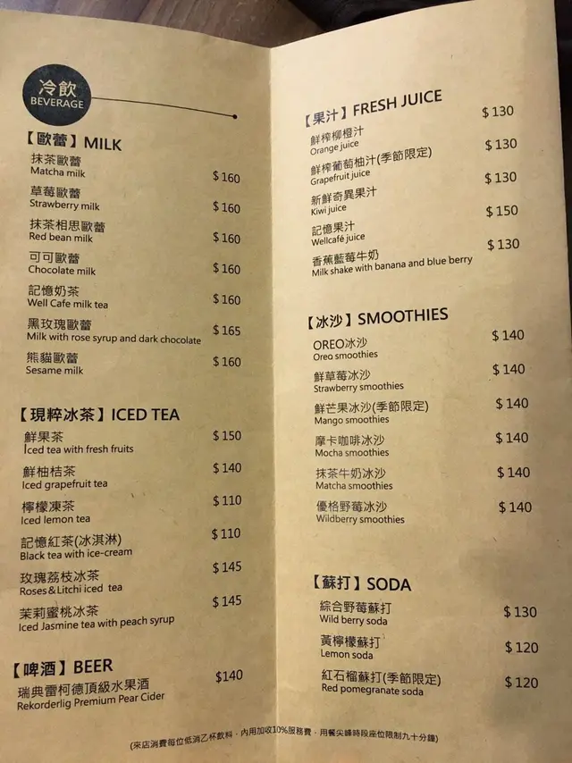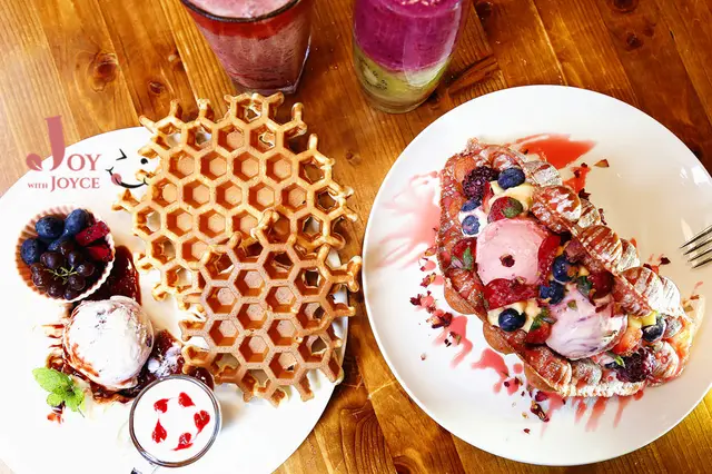 蜂巢鬆餅、現打果汁、咖啡、歐蕾、冰沙、啤酒等。