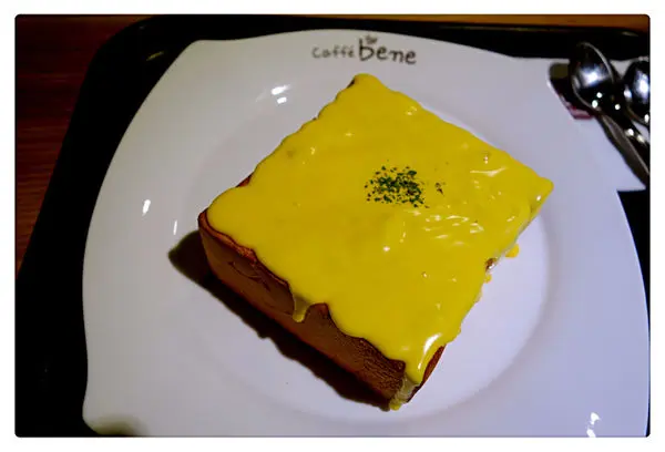 來自韓國的咖啡店,開在一級戰區 近明曜百貨的Coffee Bene,我們來的時間有點晚了 所以不敢點咖啡來喝(會睡不著)那就甜、鹹點各來一份吧!