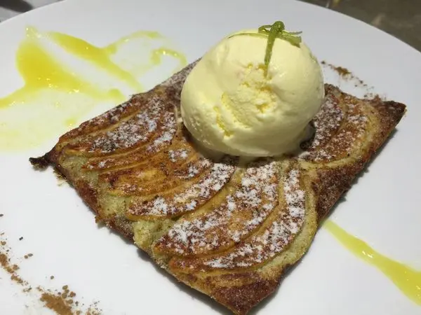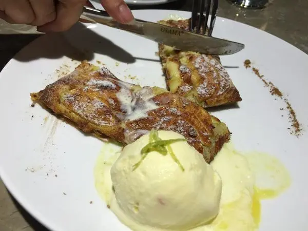 享用時先挖了一口原味 (建議可先品嚐一口原味) 再把焦糖海鹽醬淋入 又多了種不同層次的口感,也可以添加些許冰淇淋 讓冷熱交叉產生不同的口感!