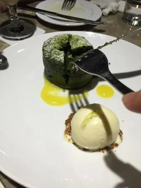 當然我也不會阻止別人抹茶,當天都來了於是就嚐了4/1的抹茶熔岩 入口只覺得這抺茶真的好濃 但畢竟我真的不愛抹茶 於是火速加了香草冰淇淋一起入口!!