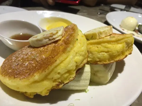 熱蛋料糕一上桌~好香哦 ! 厚實卻又鬆軟的熱蛋糕可搭著蜂蜜奶油.香蕉.楓糖.冰淇淋或單吃原味 一共就有五種不同的吃法!