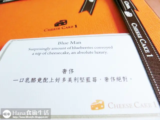 小卡片上有中英文的蛋糕介紹,名為奢侈 Blue Man