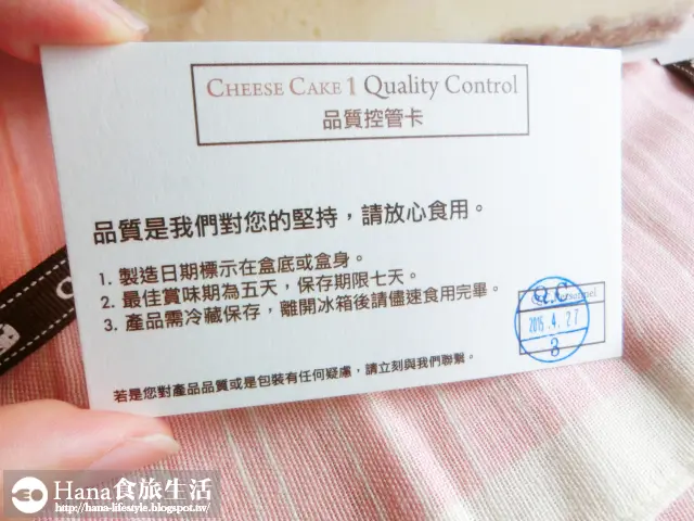 ▲蛋糕底層隨附一張感謝兼品質控管卡,