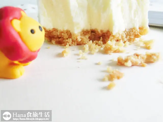 厚厚的乳酪層帶點奶油色與底層咖啡色的餅乾相當搭,已迫不及待挖上一口