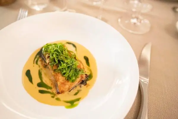 底下的醬汁主要為九層塔及柚子奶油醬,