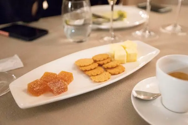 外加麵包、一份主菜、一份甜點,最後還有小茶點,搭配咖啡或茶,