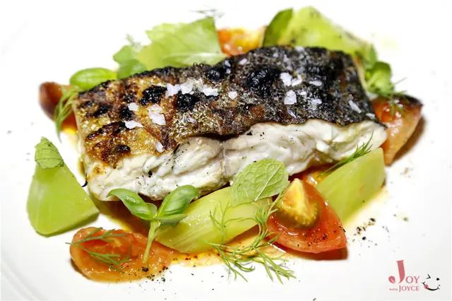 西餐常見的魚種,取材自台灣現流鬼頭刀魚,用直火碳烤至外皮微焦脆上桌。搭配一旁萵苣莖營養又清淡,是女生會非常愛的口味哦。