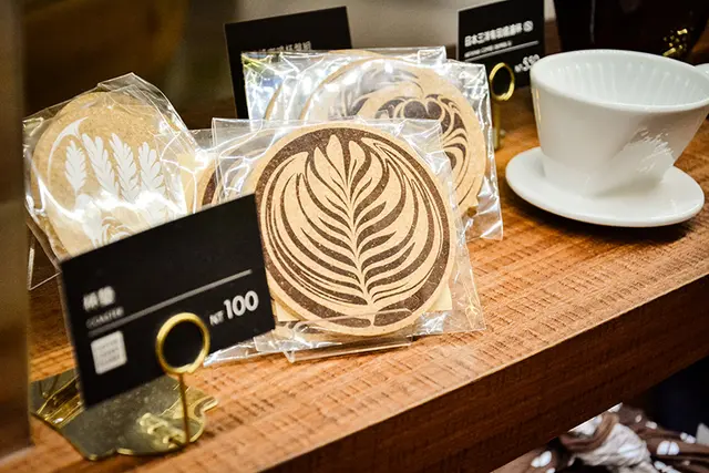 咖啡拉花藝術最經典的圖紋拿來當杯墊,越看越有趣。