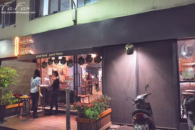 黑色系外觀感覺頗低調,夜晚情況下也襯托了黃色Corner Office的"O"燈泡字,讓人馬上就能認出來。