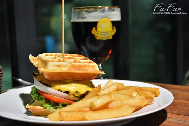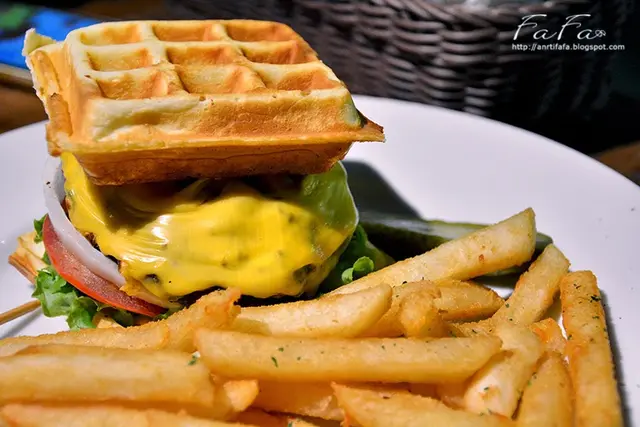 特地來享用鬆餅夾漢堡的甜鹹組合果然也沒讓我失望,雖然鬆餅有些軟,但是散發的奶油香味甜甜的好迷人,